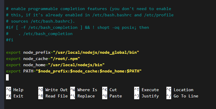 export node_prefix="/usr/local/nodejs/node_global/bin"